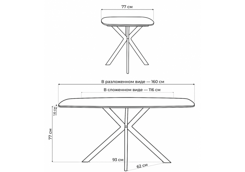Длина стола в разложенном виде: 160 см.