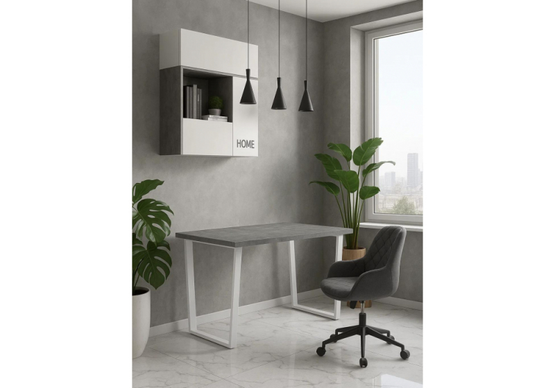 Стол деревянный Лота Лофт 120х75 бетон светлый / белый матовый (75x75).