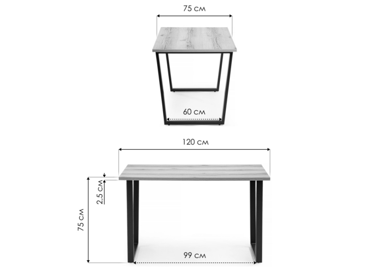 Толщина столешницы: 25 мм.