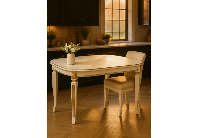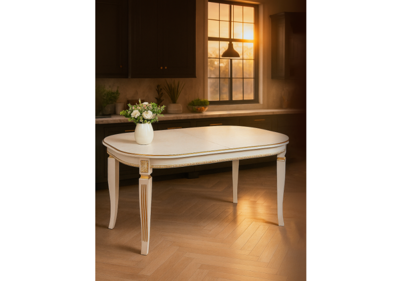Стол деревянный Romeo молочный с золотой патиной (85x54x75).
