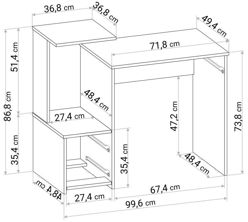 Компьютерный стол Джаз-24 99,6х49,4х86,4 левый дуб молочный (49,4x86,4)