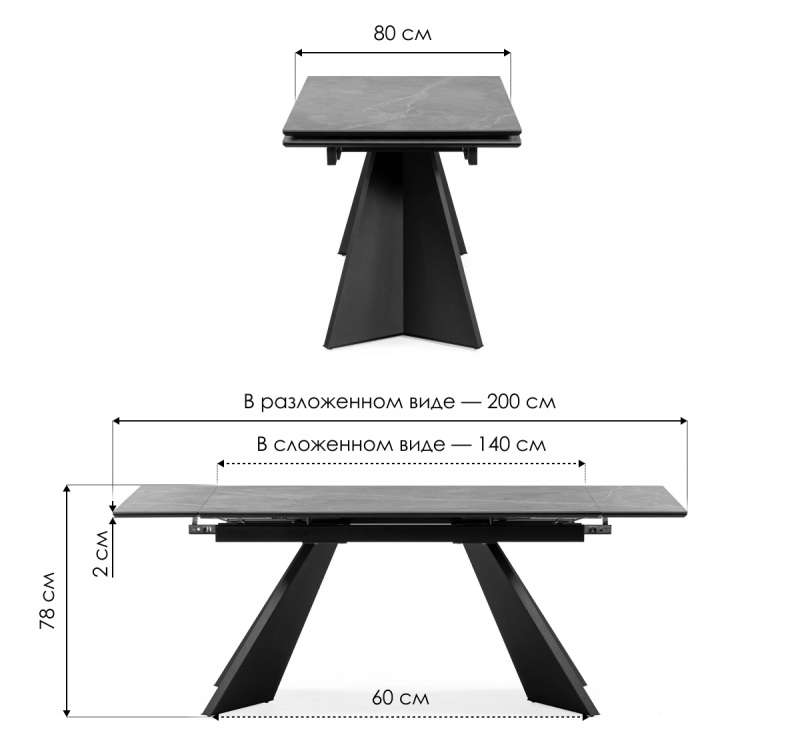 Расстояние между ножками: 60 см. Толщина столешницы: 2 см.