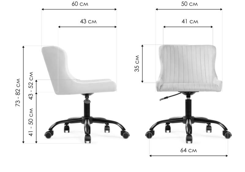 Высота подлокотников: 43 - 52 см Диаметр крестовины: 64 см