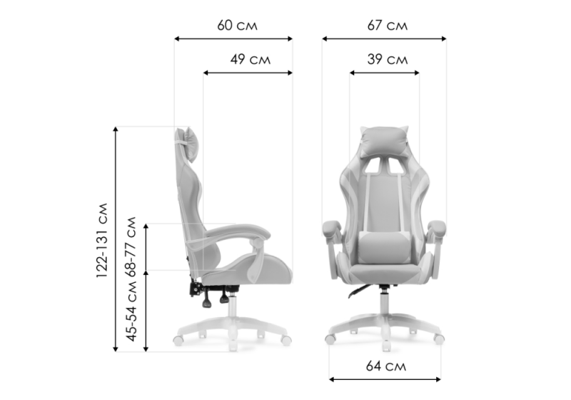 Высота подлокотников: 68 - 77 см. Диаметр крестовины: 64 см.